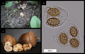 This recently described truffle was found scattered amongst an oak-dominated forest from mid-Summer through late Fall.