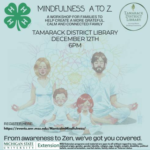 This workshop will be held at the Tamarack District Library (832 S Lincoln Ave., Lakeview, MI 48850) in Lakeview, Michigan, on December 12th at 6 p.m.