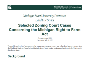 Selected Zoning Court Cases Concerning the Michigan Right to Farm Act court cases