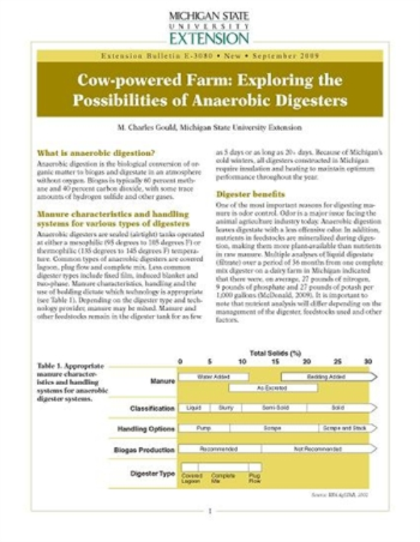Table 1. Appropriate manure characteristics and handling systems for anaerobic digester systems